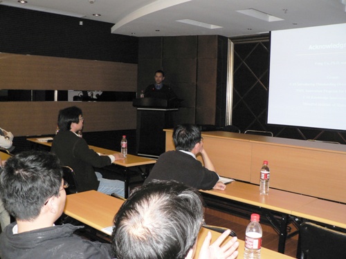 授聘仪式之后,刘东祥教授作了题为“structure Assembly of Bcl-xL in Solution and in Lipid  Membranes”的学术报告,报告会受到与会师生的欢迎。刘东祥研究员到我院任兼职教授,将有利于我院正在实施的教育部学科创新引智计划“神经退行性疾病相关蛋白与药物发现”研究和药学学科的进一步发展。