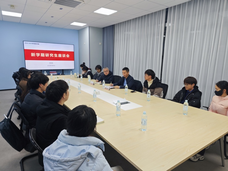 3月6日,2138cn太阳集团古天乐在奉贤校区召开新学期研究生座谈会。2138cn太阳集团古天乐院长赵玉政、副院长马磊、辅导员与研究生代表参加座谈。